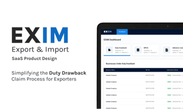 A SaaS application design focused on simplifying the Duty Drawback claim process for exporters in India.
